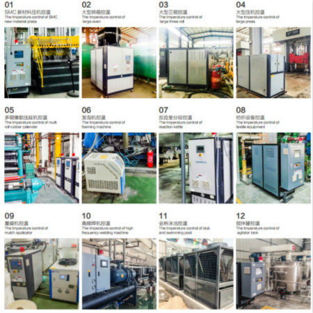 油温机多用于模具的加热、辊轮恒温控制或其他类似需求的工业设备控温。其工作原理是:高温循环导热油从应用设备(模具)出来后进入运油式模温机,设备根据设定的温度对导热油进行加热或冷却,并由高温油泵输送到应用设备(模具)的管道入口,由此达到恒温控制的目的。油温机可以被用于模具的加热、恒温控制或其他同样需求的工业领域。