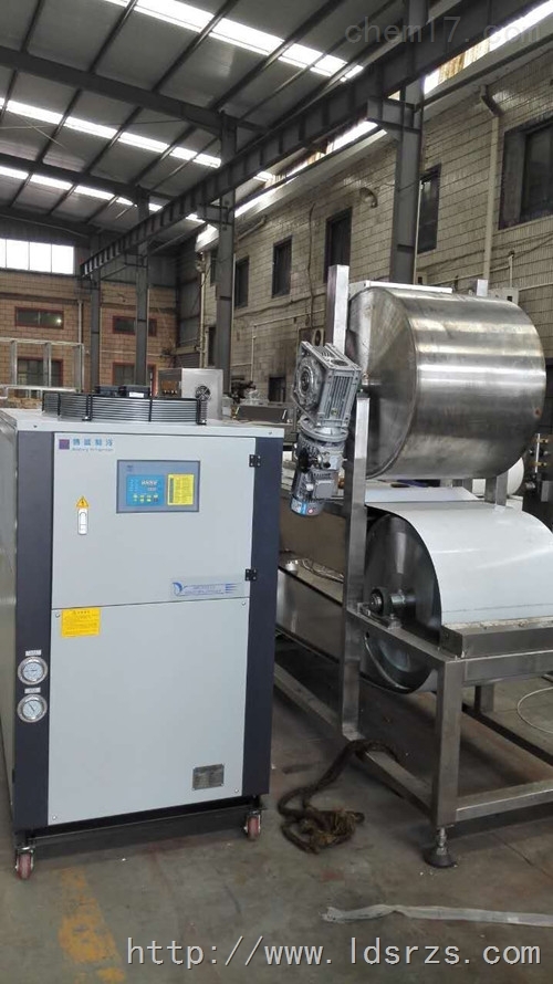 辊筒冷水机,制冷量可供选择.采用PLC+ 触摸屏控制系统.可以和计算机通讯.以便接受计算机的设定,控制和向计算机传输实测温度.传输泵采用磁力泵,无泄漏,无污染,高扬程.储液桶及管路密闭承压,防止载冷剂挥发及结露、结冰,并有液位指.多项报警保护:断水,水温过高,循环泵故障,压缩机过热,压力过高,过流,缺相,相续等.