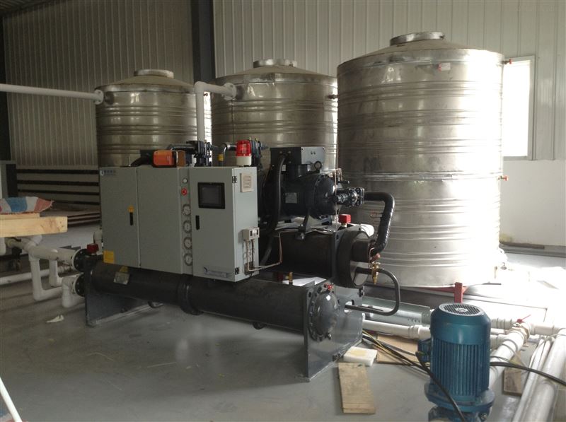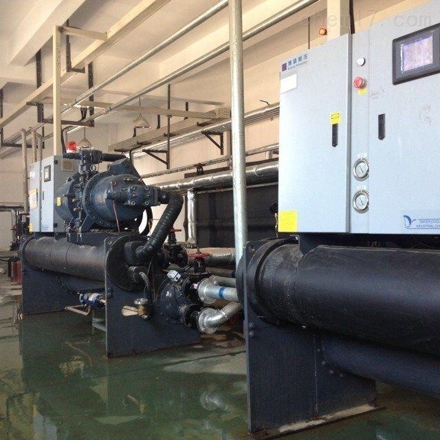 水冷式螺杆式冷水机需要配套冷却水塔及循环水泵连接方能达到制冷效果,安装简单方便,只要将螺杆式冷水机与冷却水塔、循环水泵、不锈钢水箱及被冷却设备之间用管道连接,接通电源(标准电源3相 380V 50HZ)即可投入使用。在正常运行过程中,免不了因为有污垢或其它杂质影响制冷效果,为循环水的质量,可考虑在水源处安装过滤器,以免杂质进入管道影响机组运行。为了能延长水冷螺杆式冷水机组使用,使制冷效果达到更佳状态,应定期做好维护及保养工作,冷水机组运行质量,提高生产效率。