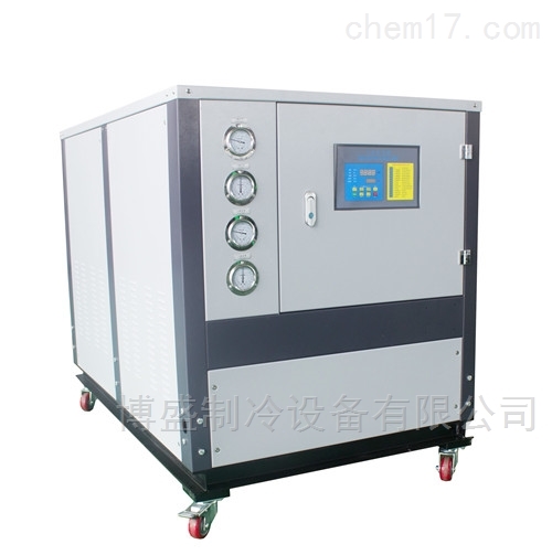 工业型冷水机,上海工业冷水机厂可根据要求按用户设置好的温度自动调节,无需要专人照看。原理是先向冷水机机内水箱注入量的水,通过冷水机制冷系统的制冷作用将水箱内的水冷却降温。再由循环冷冻水泵将低温冷冻水送入需冷却的设备模具或其它冷却系统中,冷水机循环冷冻水将设备不需要的热量带走后循环水温度升高再通过循环水泵循环回流到冷水机水箱内,再通过制冷系统蒸发器进行吸热将循环水进一步冷却降温。如此周而复始即可使我们的设备或水池的水温达到我们想要的理想温度。