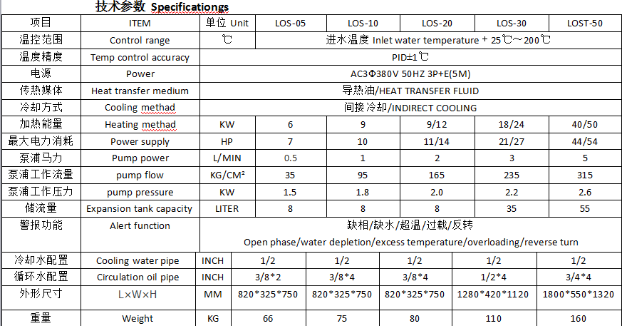 温控器:采用欧姆龙系列温控仪,内置温控模块,P.I.D数值根据工艺需求自主设定,控温范围广,控温,达±1℃. 加热元件:发热丝由引进,呈环形,装入不锈钢管内,空隙部分填满导热性能好,呈管筒插入状,法兰连接,置于不锈钢发热桶中央部分,制热均匀,不会产生局部过热现象. 传热泵浦:采用中国台湾元新系列高温泵浦,运转顺畅,传热效果明显,噪音低,. 电器组件:所有电器元件均采用施耐德系列电器组件,故障率低,延长设备使用. 控制系统:微电脑控制,5路单片电路板,双组PID,加热冷却自主运行.