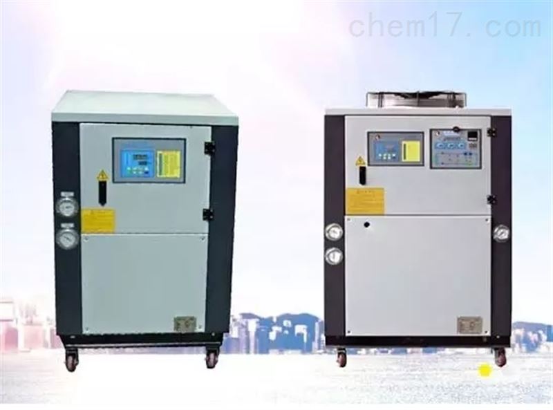 工业制冷机,冷水机组由压缩机、冷凝器、蒸发器、膨胀阀制冷系统四大部件及其他辅件组成。系统的运作能够提供恒温、恒流、恒压的冷冻水。冷水机在运行过程中先将一定量的水注入机器的内部水箱,通过冷水机制冷系统将水冷却,再由水泵将低温冷冻的水注入需要冷却的设备内,冷冻水将机器内部的热量带走,将高温的热水再次回流到水箱进行降温,如此循环交换冷却,达到为设备制冷冷却的目的。