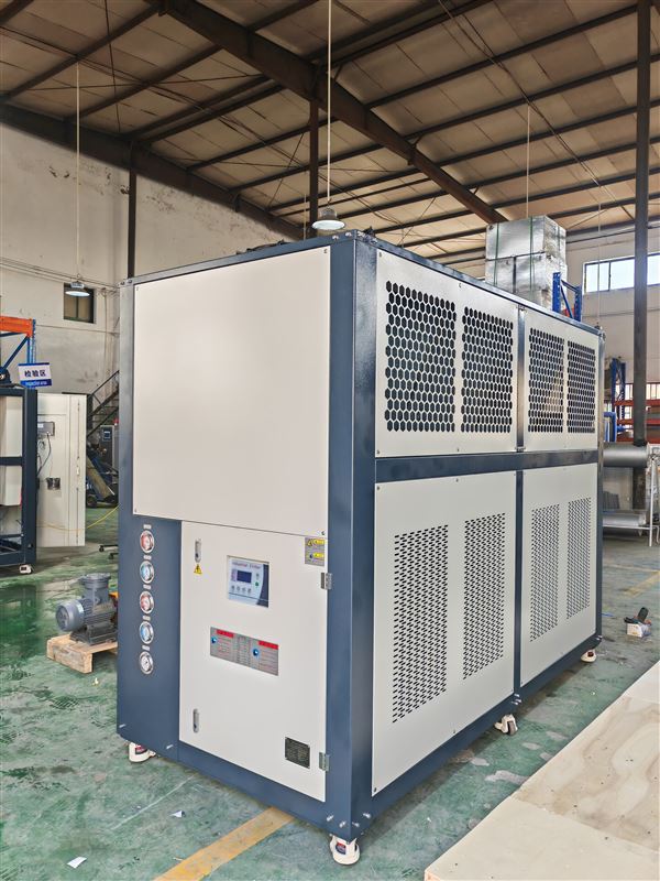 在风冷式冷水机的选型中,选择适合自己的生产需要的型号至关重要,在风冷式冷水机组的整体机身中含有不锈钢水箱和水泵,不需要再多加冷却塔来排热.安装及挪动十分简单方便.但它对环境要求很高,因为这是以热风循环来制冷的,假如机组装在车间自然通风效果不佳的环境下,会直接影响到冷水机制冷的实际效果