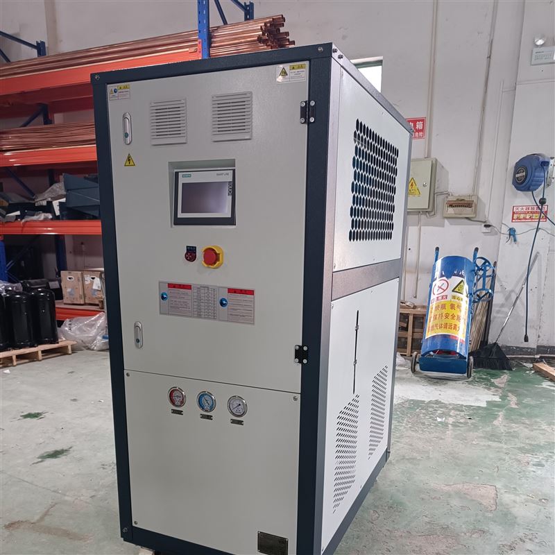 造粒机械在制粒过程中,由于摩擦、压力等因素,会产生大量的热量,这些热量如果不及时散去,会导致设备温度升高,影响设备正常运行,甚至造成设备损坏。因此,造粒机械在运行过程中,通常需要使用冷水机进行冷却降温。 冷水机的作用是通过循环水系统将热量从设备中带走,并通过冷凝器将热量散发到外界环境中,从而保持设备的正常运行温度。在造粒机械中,冷水机通常与设备连接,通过水管将冷水循环到设备中,吸收设备产生的热量,然后再将热水带回冷水机中进行冷却。 在选择冷水机时,需要根据造粒机械的具体型号、生产规模、环境温度等因素进行综合考虑,以确保冷水机能够满足设备的冷却需求。同时,还需要注意冷水机的安装、调试和维护,以确保其正常运行和延长使用寿命。 总之,造粒机械使用冷水机进行冷却降温是一种有效的解决方案,可以确保设备的正常运行和生产效率。